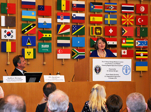 Merrigan delivered the lecture at the United Nations Food and Agriculture Organization at the invitation of David Lane, the Obama administration’s ambassador to the U.N. food agencies in Rome. The McCovern lecture is named for the late South Dakota Democratic senator, 1972 presidential candidate and ambassador to the U.N. food agencies during the Clinton administration.